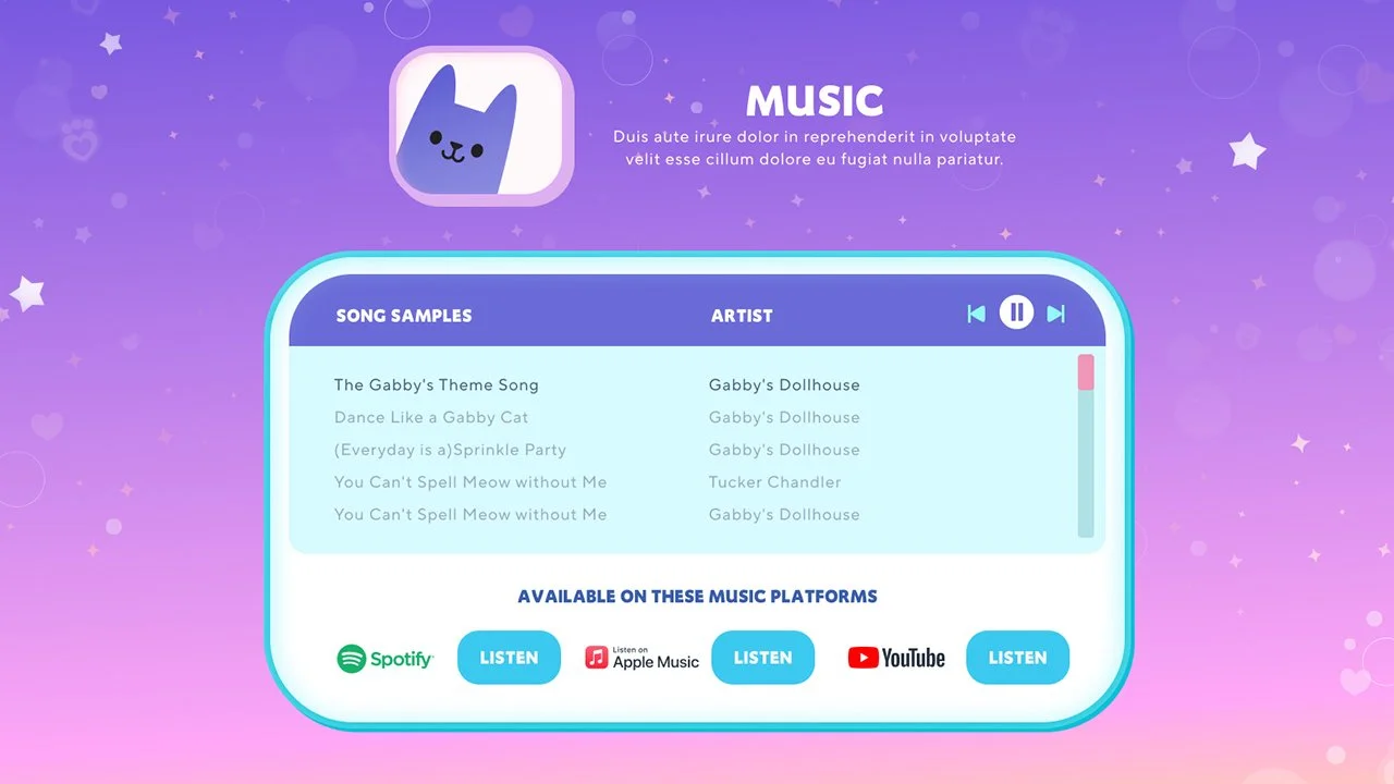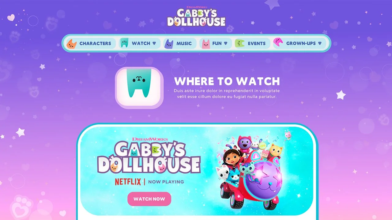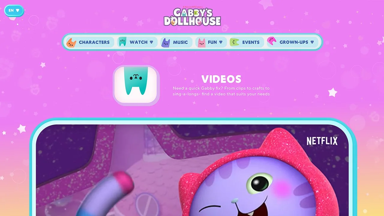 Paws up, team! Studio City partnered with DreamWorks Animation to develop the official website for their popular animated show "Gabby's Dollhouse," designed to engage and entertain young fans globally. The website supports nine key markets, including the USA, Canada, Latin America, and several European countries, ensuring easy access and seamless user interaction.